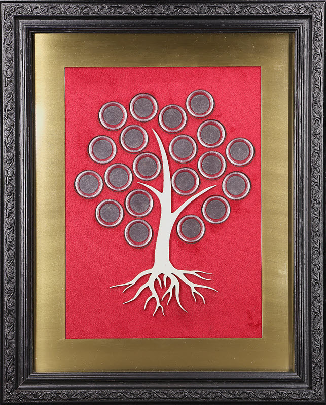 Так появилась картинка-шкатулка «Ассамбляж “Древо”» — объект, в котором соединяются искусство, символика и коллекционирование. Его композиция напоминает древо жизни, ветви которого становятся отражением пути и судьбы владельца. Внутри композиции могут разместиться 20 золотых монет, с диаметром до 25 мм., превращая изделие в настоящий семейный артефакт.