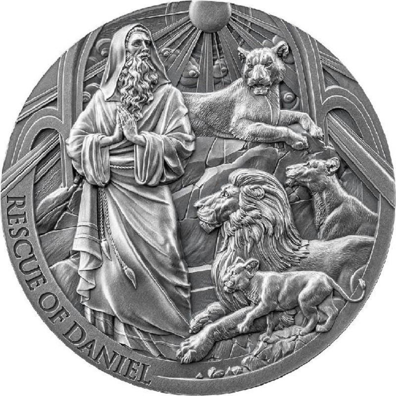 Эта красивая серебряная монета в 2 унции из серии "Библейские истории" и посвящена спасению Даниила, является ярким символом верности и защиты для всех, кто сохраняет преданность Богу, несмотря на гонения и опасности. Монета имеет качество античной отделки, горельефы и поставляется в футляре вместе с сертификатом подлинности. Ограниченный тираж всего 1000 штук по всему миру.