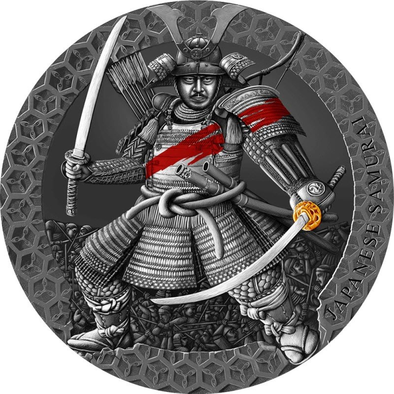Эта замечательная серебряная монета весом в 3 унции из серии «Легендарные воины», посвященной самым известным воинам в истории. В этом выпуске — японский самурай. Самураи - носители духа и философии Японии. Верность долгу, отвага и самоотверженность ради Родины и господина - неотъемлемые черты самурая. У монеты античное качество отделки, красивый горельеф с выборочной позолотой и частичной окраской, поставляется в футляре с сертификатом подлинности. Тираж: 500 штук.