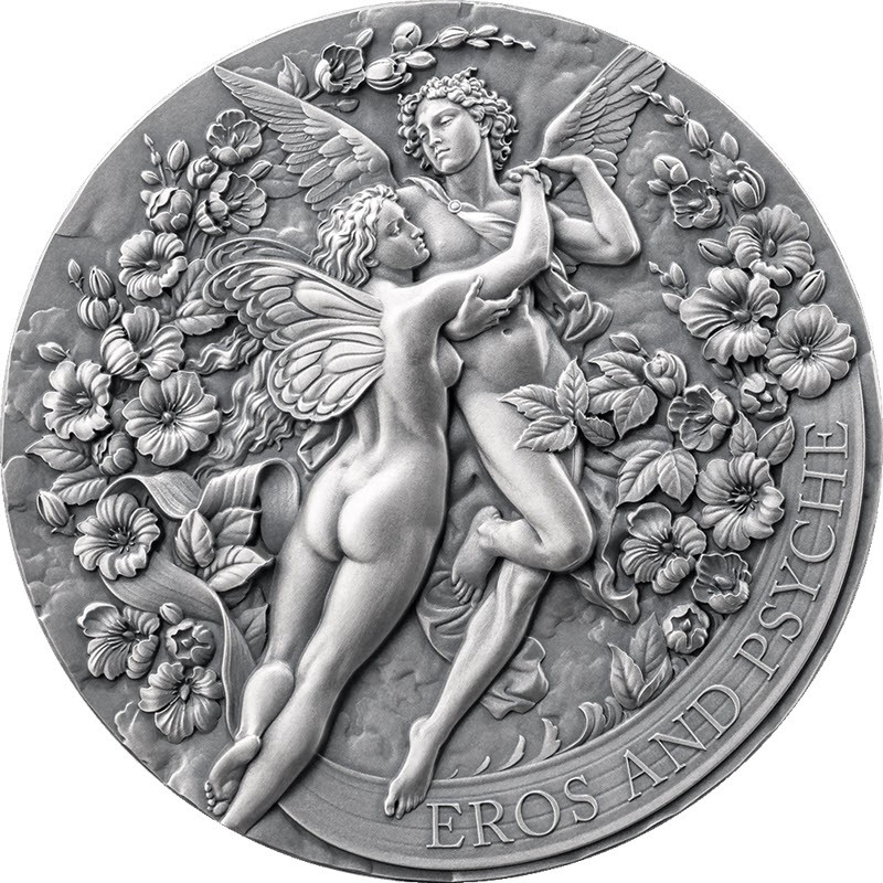 На реверсе изображена репродукция картины «Эрос и Психея» Вильяма-Адольфа Бугро. Внизу справа надпись: EROS AND PSYCHE.