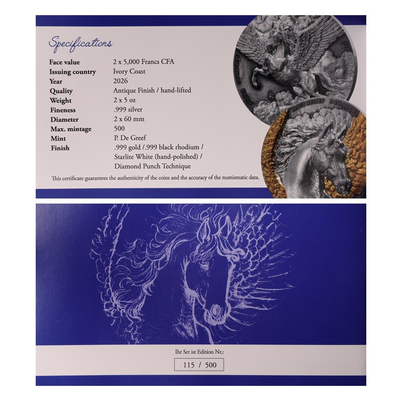 Кот-д’Ивуар Набор "Пегас" 2026 г., 2*155.5 г серебра