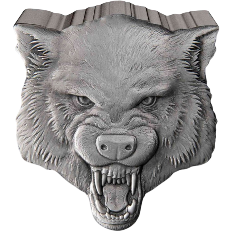 Монета, выполненная в форме головы волка с широко раскрытой пастью. Античная отделка и реалистичность гравировки делают эту монету особо впечатляющей. Монета находится в акриловой капсуле, отлитой по ее форме и упакована в тематический футляр. Сертификат подлинности прилагается. Ограниченный тираж — 2000 штук.