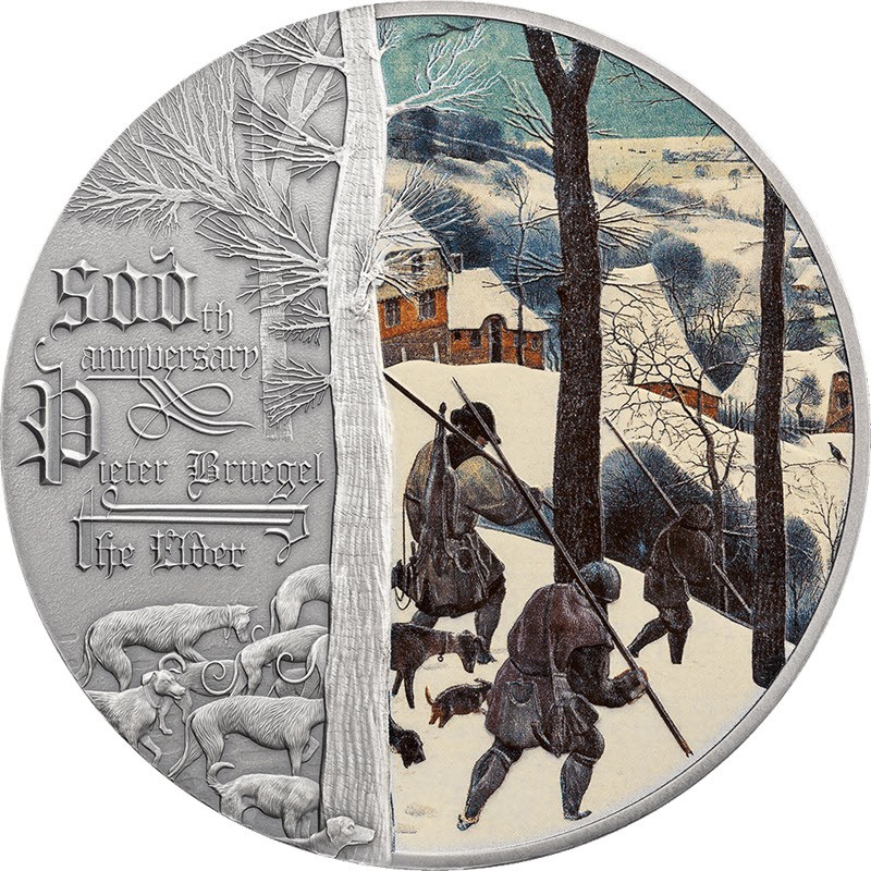 Эта чудесная серебряная монета в 2 унции посвящена 500-летию со дня рождения Питера Брейгеля. У нее качество антик, цифровая печать, она поставляется в элегантном футляре с сертификатом подлинности. Тираж: 500 штук.