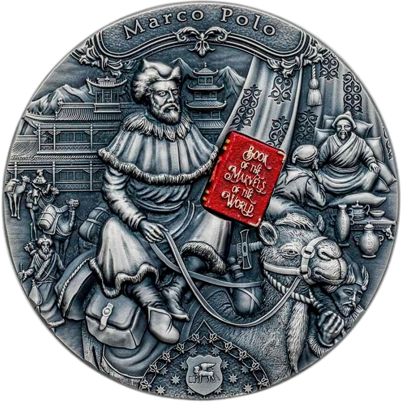 Эта потрясающая серебряная монета весом 2 унции является новым выпуском в новой серии "Знаменитые исследователи" и изображает знаменитого Марко Поло. Монета имеет невероятный высокий рельеф, 3D-вставку в виде книги, качество античной отделки и поставляется в элегантном футляре вместе с сертификатом подлинности. Ограниченный тираж 500 штук по всему миру.