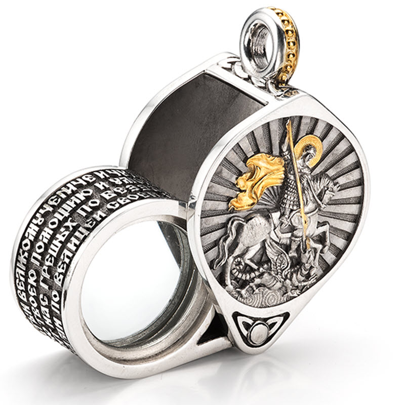 Часто невооружённым глазом невозможно рассмотреть эти отличия, поэтому нумизмату помогают увеличительные устройства, к которым относится и лупа. Портативная лупа с диаметром линзы 21 мм и тридцатикратным увеличением изготовлена из серебра 925° — средний вес 48 г. Размер лупы: 43 x 28 x 18 мм.